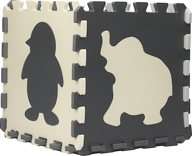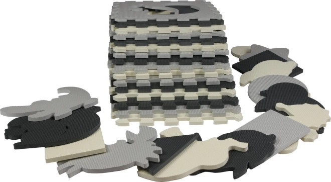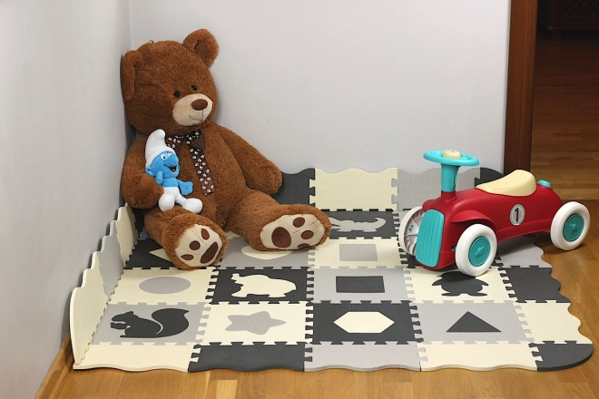 Pjenasta puzzle podloga siva–krem Životinjice i oblici 28 × 28 cm