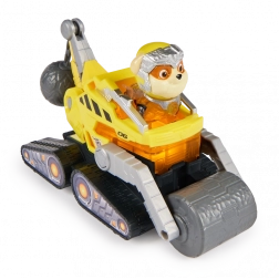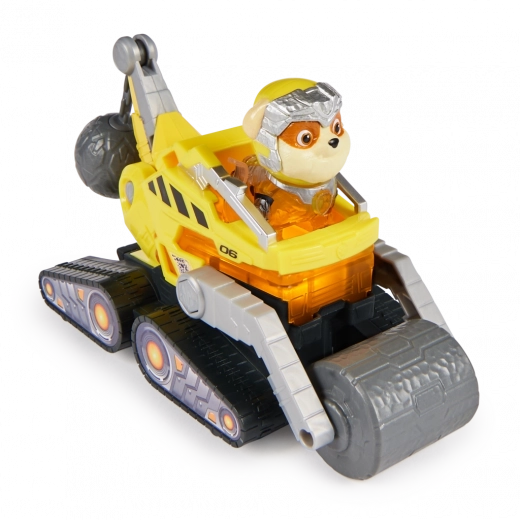 Rubble je odjeven u svoju žutu filmsku uniformu s prozirnim detaljima i kacigom. Dovoljno je posjesti figuricu u kabinu i svjetla se automatski pale na različitim mjestima vozila – uključujući svjetleće šapice. Idealno za igru omiljenih scena i razvoj mašte i motoričkih vještina.