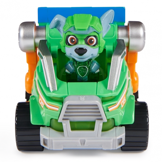 Pridružite se Rockyju i doživite uzbudljive spasilačke avanture u njegovom vozilu iz filma PAW Patrol: The Mighty Movie! Ovaj model kamiona za smeće PAW Patrol dugačak je više od 18 centimetara i visok 10 centimetara, ima super-elegantan dizajn, pomične ruke za kante i uzbudljive zvučne efekte sa sinkroniziranim bljeskajućim svjetlima, pa je fantastičan dodatak kolekciji svih obožavatelja PAW Patrola (baterije su uključene)! Rocky nosi svoju zelenu uniformu iz filma PAW Patrol: The Mighty Movie, s prozirnim dijelovima i sjajnom kacigom. Posjednite Rockyja na sjedalo njegova kamiona za smeće kako biste aktivirali rasvjetu na raznim dijelovima vozila i gledajte kako mu zasvijetle šapice, kako bi spasilačka misija bila napetija i zabavnija dok s njegovim spasilačkim vozilom jurite s jedne misije na drugu! Uz igračke iz svijeta PAW Patrola dijete može tijekom igre razvijati maštu i motoričke vještine te istovremeno proživljavati svoje omiljene scene iz filma. Za još zabavnije i uzbudljivije misije nadahnute serijom PAW Patrol, skupljajte sve igračke iz filmova o PAW Patrolu, kao što je nevjerojatni zapovjedni nosač zrakoplova, te sve igračke iz posebnih izdanja PAW Patrola za djevojčice i dječake, kao što su figurice i igraće setove Mighty Pups, Aqua Pups i Big Truck Pups (svaki se prodaje zasebno), i uživajte u beskrajnim avanturama sa svojim omiljenim psećim junakom i Rockyjevim spasilačkim vozilom iz filma PAW Patrol: The Mighty Movie!