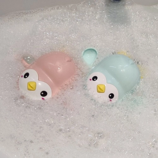 Jednostavno okrenite mehanizam i gledajte kako pingvini veselo plivaju i stvaraju mjehuriće – sigurna i beskrajna zabava u kadi.