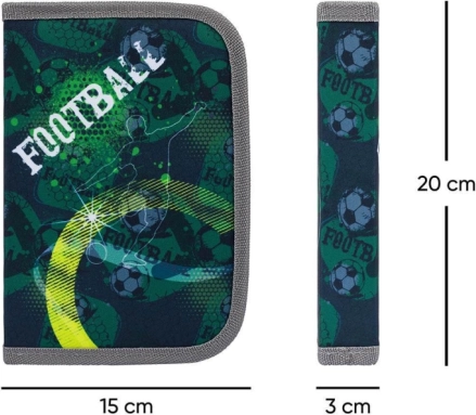 Jednokatna školska pernica s nogometnim motivom nudi dovoljno prostora za sav vaš školski pribor, koji možete sigurno pohraniti zahvaljujući kvalitetnom patentnom zatvaraču. Elegantni dizajn sa siluetama nogometaša i loptama čini ovu pernicu savršenim dodatkom za ljubitelje sporta.