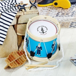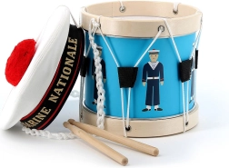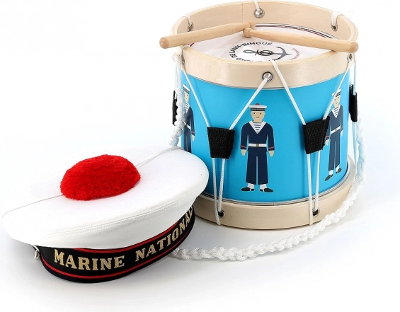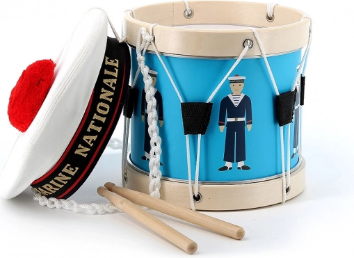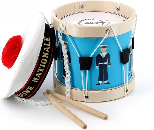 Ovaj je bubanj nastao u suradnji s francuskom mornaricom, što se odražava u autentičnim detaljima i kvaliteti izrade. Prikladan je za djecu od 3 godine, a zahvaljujući ugodnom zvuku i ergonomskim palicama omiljet će početnicima i malim ljubiteljima glazbe.