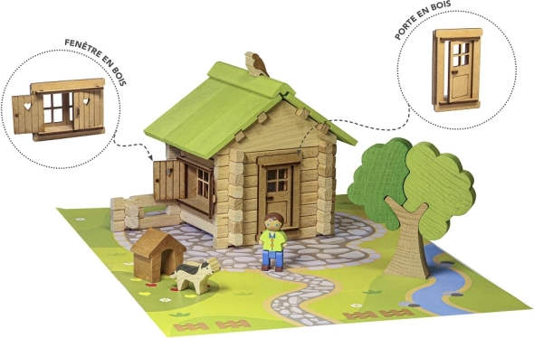 Sagradite vlastitu mezonetnu kućicu od masivnog drva! Ova tradicionalna JEUJURA građevna igračka nudi 85 dijelova, obojenih vodorazrjedivim lakovima, i razvija kreativnost, finu motoriku i prostorno opažanje. Proizvedeno u Francuskoj, pakirano u praktičnom koferčiću s jasnim uputama.
