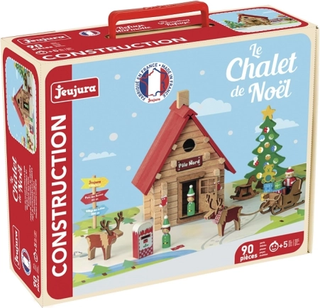 Otkrijte čaroliju Božića s drvenom konstrukcijskom igračkom JEUJURA – Božićna kućica s 90 dijelova. Složite vlastitu zimsku scenografiju s Djedovom kućicom, vilenjacima, saonicama s jelenima i božićnim borom. Set je izrađen od kvalitetnog masivnog drva u Francuskoj i pakiran u praktičnom koferiću. 90 dijelova od masivnog drva, božićni motiv s Djedom Božićnjakom, ekološke boje na bazi vode, praktično pakiranje s uputama.