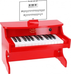 Otkrijte čaroliju glazbe s crvenim dječjim klavirom VILAC. Elegantni drveni klavir s 18 tipki i notnim zapisom od 10 stranica razvija ritam, sluh i kreativnost. Radi na baterije i nudi automatsko isključivanje nakon nekoliko minuta neaktivnosti. Sjajan izbor za prve glazbene korake – izdržljiva izrada, lijep zvuk i radost sviranja.