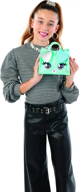Stilskom torbicom PURSE PETS VIPooch u mint boji osvježit ćete svaki outfit, a istodobno će zabaviti svojom interaktivnošću. Reagira na dodir, trepće i nudi 30+ zvukova i reakcija. Ima podesivi remen do 100 cm, ručku za nošenje u ruci i crossbody način, pop-art oči, uši sa srebrnim efektom te kopčanje na druker. Sjajan poklon za djecu od 4 godine naviše.