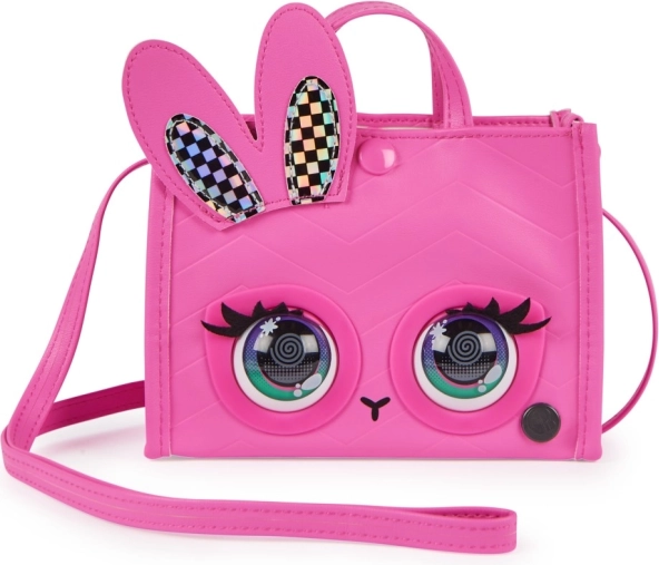 Izrazite svoj stil sa slatkom torbicom PURSE PETS Holly Hops u ružičastom dizajnu s pop-art očima i holografskim zečjim uškama. Torbica reagira na dodir – namigivanjem i zvukovima – i svaki outfit pretvara u zabavnu predstavu. Zahvaljujući pametnim modusima djeca će uživati u plesu u ritmu i natjecanju u zurenju.