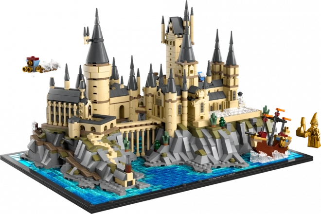 - Model dvorca i okolice, zlatna minifigura arhitekta Hogwarts, pločica s natpisom „Hogwarts Castle”, mini model broda Durmstrang, kočija Beauxbatons, Ford Anglia kod Vrbe mlatič