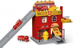 Postaja je opremljena s dva vatrogasna automobila sa slobodno okretajućim kotačima za glatku vožnju, ručnim dizalom za premještanje posade između katova i vratima koja se otvaraju za brzi izlazak. Priložene naljepnice i ilustrirana uputa olakšavaju sastavljanje i omogućuju djeci da postaju prilagode vlastitoj mašti.