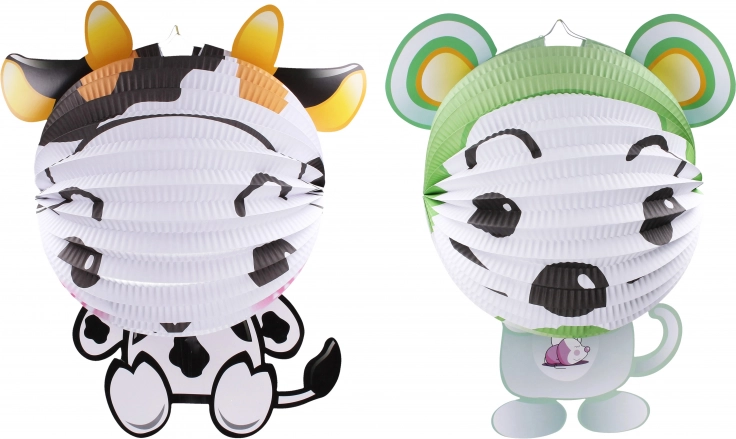 Dekorativna lampion kugla promjera 25 cm s motivom životinjice, dostupna u dvije različite varijante: kravica i miš.