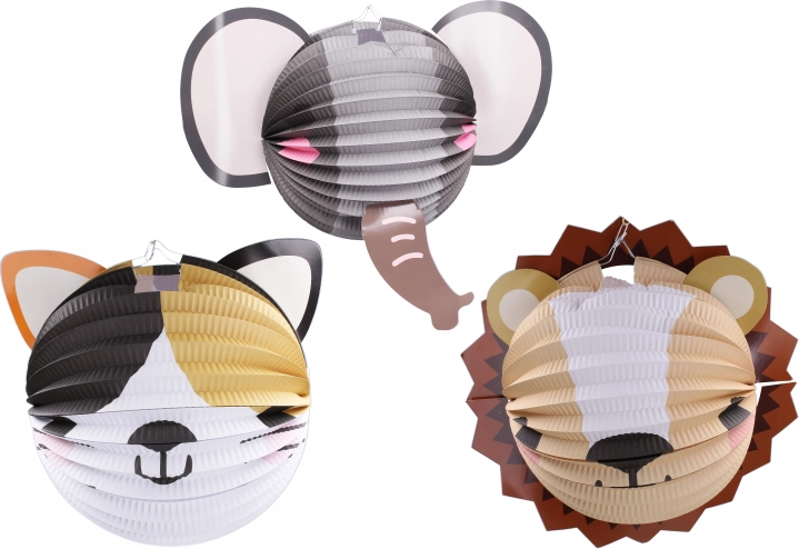 Lampion Lopta Životinje za proslave, 25 cm, tri motiva: slon, lav, mačka. Idealna dekoracija za djecu.