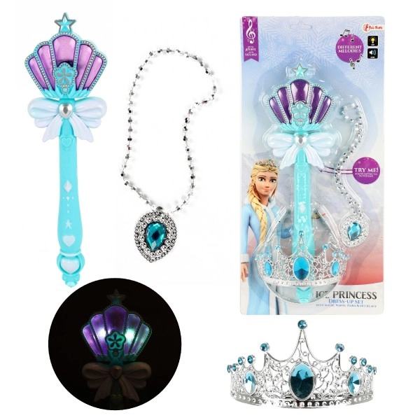 Čarobni štapić, rajf i ogrlica odlični su dodaci za sve ledene princeze. Štapić ima zvuk i svjetlo. Prikladno od 3 godine.