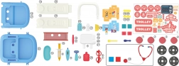 - Sadrži razne liječničke alate koji djeci omogućuju oponašanje stvarnih liječničkih zahvata.