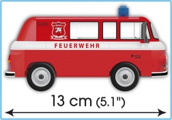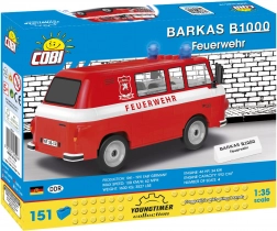 Barkas B1000 bio je ikonsko dostavno vozilo i minibus proizvođen 1961.–1991. u bivšoj DDR. Varijanta Feuerwehr bila je prilagođena potrebama vatrogasnih postrojbi. Ovaj COBI set vjerno dočarava karakter povijesnog vozila u mjerilu 1:35, a zahvaljujući kvalitetnim otiscima izgleda odlično i bez naljepnica.
