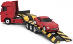 Prevezite AMG GT na niskopodnoj poluprikolici tegljača MERCEDES-BENZ ACTROS i uživajte u autentičnom utovaru i vožnji. Odlično za kreativnu igru i kolekcionare.