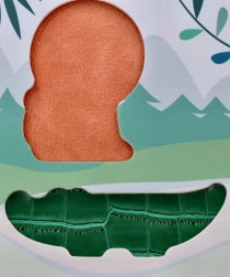 Djeca mogu stvarati priče sa životinjama poput žirafe, lava, majmuna i aligatora, što potiče njihovu kreativnost.