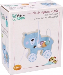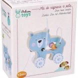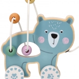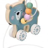 Drvena igračka na kotačima s medvjedićem će privući pažnju i potaknuti dijete na kretanje.