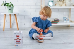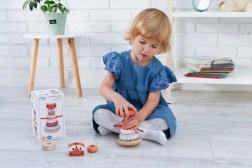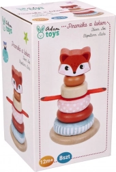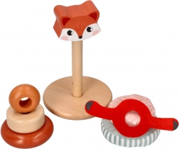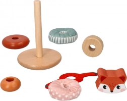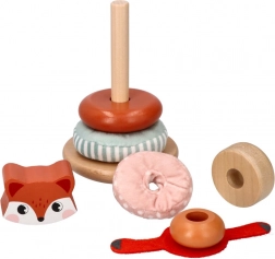 Kula s motivom lisice za slaganje idealna je igračka za malu djecu koja žele istraživati svoja osjetila. Svaki komad igračke nudi razne teksture, od glatkog drveta do mekih materijala, i namijenjen je za razvoj osjetilne integracije. Svijetle boje i uzorci pomažu s rastućom vizualnom percepcijom, dok slaganje i manipulacija pojedinim elementima jačaju finu i krupnu motoriku.