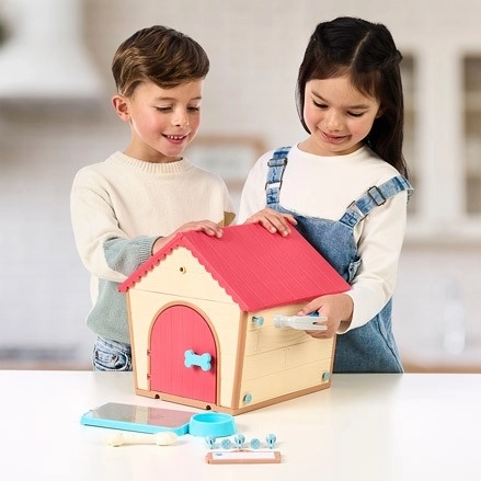 Ali iznenađenje! U kućici se čudesno pojavio psić! Štencić je interaktivan i reagira na dodir. Stavite mu kost u njušku i on će je početi bacati te pritom ispuštati zvukove.