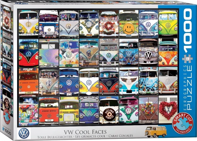 Puzzle EUROGRAPHICS VW Cool Faces pakirane su u kompaktnu kvadratnu kutiju koja štedi prostor te je idealna za pohranu i transport. Ono što ovu slagalicu izdvaja jest njezina originalna matrica rezanja. Dijelovi nemaju standardan oblik, što povećava ukupnu težinu slaganja i nudi novo iskustvo igre.