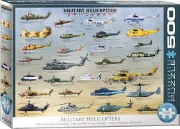 Ova će slagalica zasigurno obradovati svakog ljubitelja zrakoplovstva! Prikazano je više od 25 najpopularnijih vojnih helikoptera u povijesti, uključujući Eurocopter Tiger, Comanche i Chinook. Dimenzije složene slagalice cca 68 x 49 cm