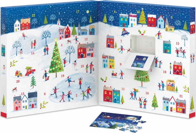 Adventski kalendar EUROGRAPHICS donosi svakog dana novu mini slagalicu s božićnim motivima. U pakiranju se nalazi 24 zasebnih slagalica, svaka s 50 dijelova, koje se nakon slaganja pretvaraju u kvadratne sličice dimenzija 12,5 × 12,5 cm. U svakom prozorčiću tiskan je i predložak, pa je slaganje ugodno i djeci i odraslima.
