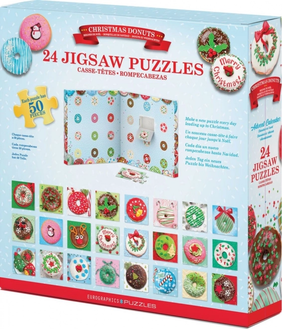 Uživajte svakog prosinačkog dana u novoj slagalici. Adventski kalendar EUROGRAPHICS donosi 24 različite puzzle s preslatkim božićnim motivima, svaka sa 50 dijelova. Zahvaljujući praktičnom kvadratnom formatu 12,5 × 12,5 cm slike se brzo slažu i savršene su za svakodnevni ritual.