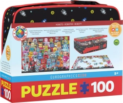 Šareni roboti i zupčanici na etuiju i motivu potiču maštu i čine slagalicu privlačnim izborom za male tehničke entuzijaste.