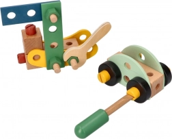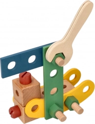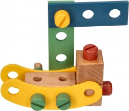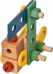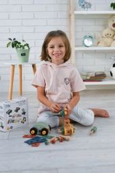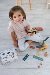 Predstavljamo jedinstveni Drveni konstrukcijski set za djecu, koji omogućuje razvoj koordinacije ruka-oko, logičkog razmišljanja i kreativnosti. Set sadrži vijke, letvice, matice, kotače te odvijač i ključ – sve potrebno za sastavljanje vozila.