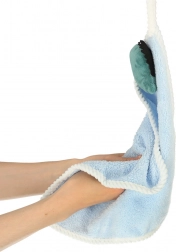 Mješavina poliestera i najlona ugodno je mekana na dodir, dobro upija i brzo se suši, pa je ručnik uskoro spreman za novu uporabu. Praktična petlja omogućuje vješanje na kuku na visini prilagođenoj djeci. Održavanje je jednostavno – pranje u perilici na 30 °C sa sličnim bojama.