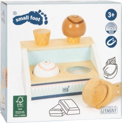 Danas je vrijeme za sladoled! Moderan drveni pult za sladoled SMALL FOOT Fresh s magnetskom žlicom, kornetima i slagivim kuglicama idealan je za kreativnu igru prodavača. Minimalistički dizajn, kvalitetno FSC drvo i pametni magneti potiču finu motoriku, komunikaciju i maštu djece.