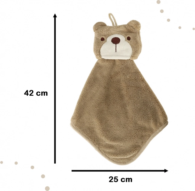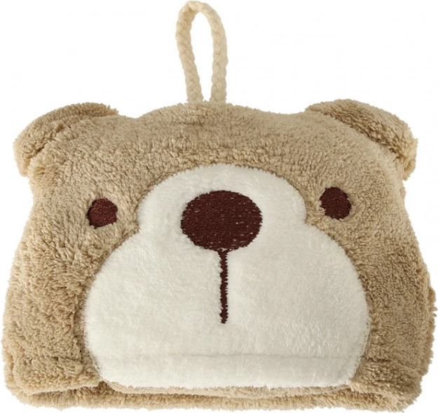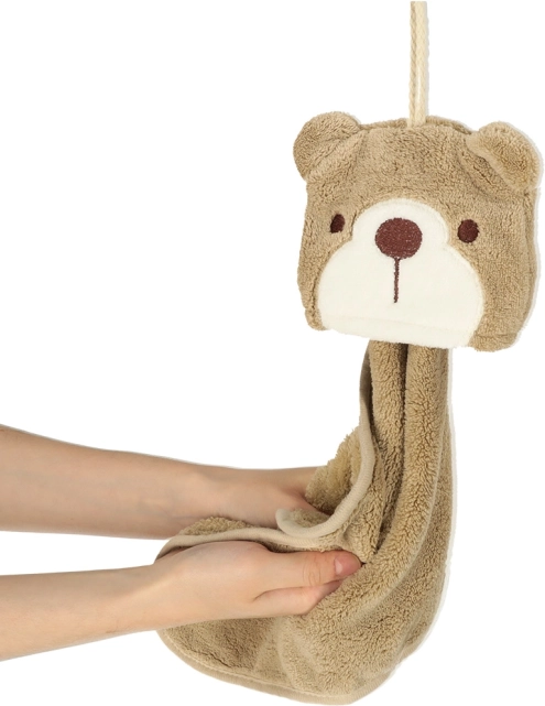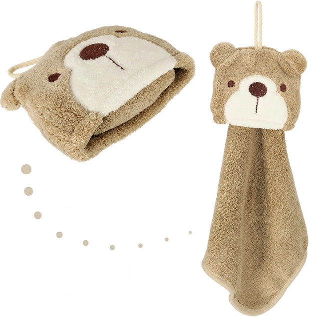 Mekan i ugodan na dodir, ručnik je izrađen od kvalitetnog poliestera i najlona u smeđoj boji. Njegov je dizajn obogaćen džepićem s medvjedićem koji ne samo da ukrašava, već i olakšava spremanje ručnika, osobito tijekom putovanja. Mogućnost pranja u perilici do 30°C čini održavanje vrlo jednostavnim.