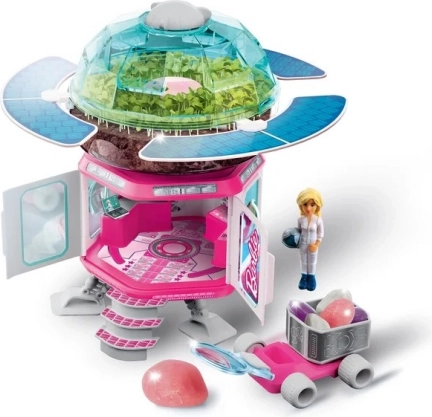 Ovaj inspirativni znanstveni set prenijet će djecu u svijet svemirskih otkrića. Izgradit će posebnu bazu za pokuse s biljkama i analizu tla, sastavit će mini rover za istraživanje nepoznatih planeta i ukrasiti modele pomoću naljepnica. Ne nedostaje ni mali model astronautkinje Barbie, koja prati djecu na njihovim putovanjima za znanjem.