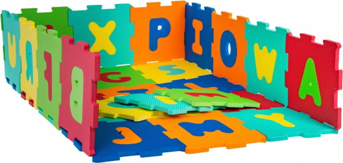 Ovaj šareni set pjenastih puzzli sa slovima A–Z djeci nudi mekano, sigurno i poticajno mjesto za igru i prvo učenje. Od dijelova lako sastavite podnu igraču podlogu ili jednostavne 3D oblike, primjerice kocku ili dječju ogradicu. EVA pjena je vodootporna, jednostavna za održavanje i dovoljno ju je prebrisati vlažnom krpom.