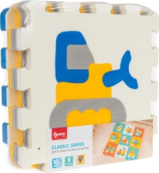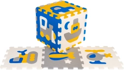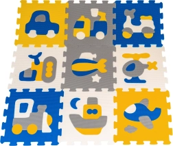 Ova pjenasta puzzle podloga s motivom automobila, zrakoplova i drugih vozila idealna je za dječju sobu i kutak za igru. Od 9 velikih dijelova brzo ćete složiti mekan prostor za igru koji štiti od hladnoće s poda i ublažava padove. Izvadivi oblici iz svakog dijela funkcioniraju kao zasebna slagalica i podupiru učenje kroz igru – prepoznavanje oblika i boja, koordinaciju oko–ruka i logičko razmišljanje.