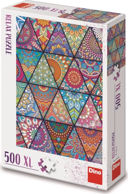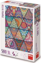 Otkrijte novi način opuštanja s puzzlema DINO Relax – 500 XL dijelova. Šarene „pločice” u mandala i geometrijskim uzorcima donose harmoniju, umirujuće slaganje i laku manipulaciju zahvaljujući ekstra velikim dijelovima za sve dobne skupine.