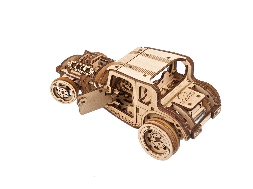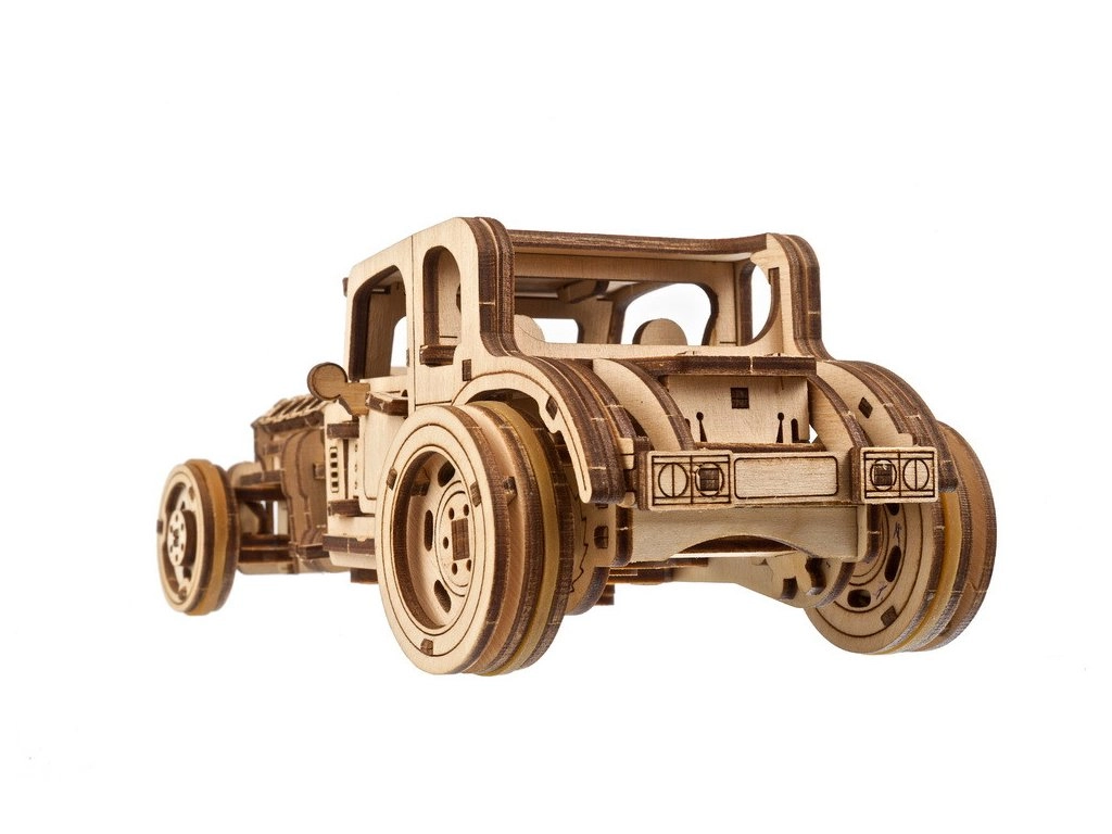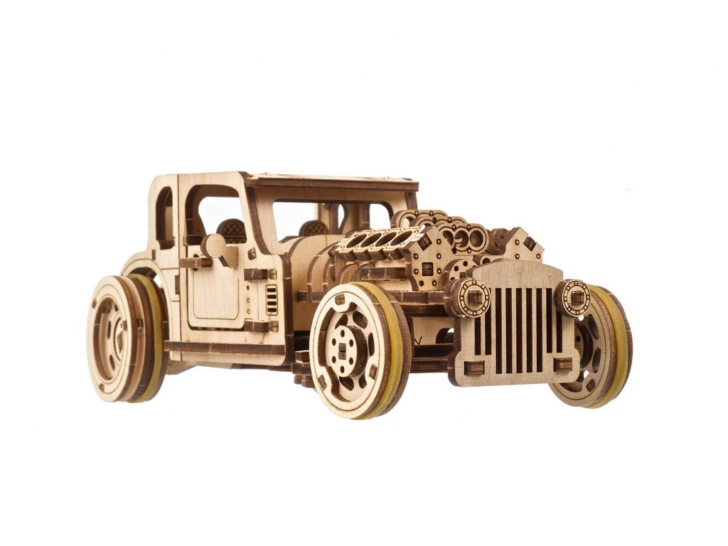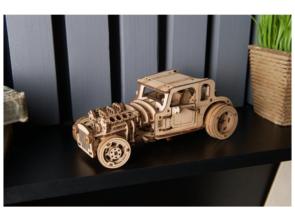 Model je osmišljen da zabavi i pri sastavljanju i pri vožnji. Nakon pažljivog “razrađivanja” podvozja uživat ćete u glatkom radu prijenosa i dinamičnom startu. U prirodnom drvu izgleda šik, a možete ga i obojiti po vlastitom stilu. Sjajan poklon za fanove hot rodova, mehanike i dizajna.