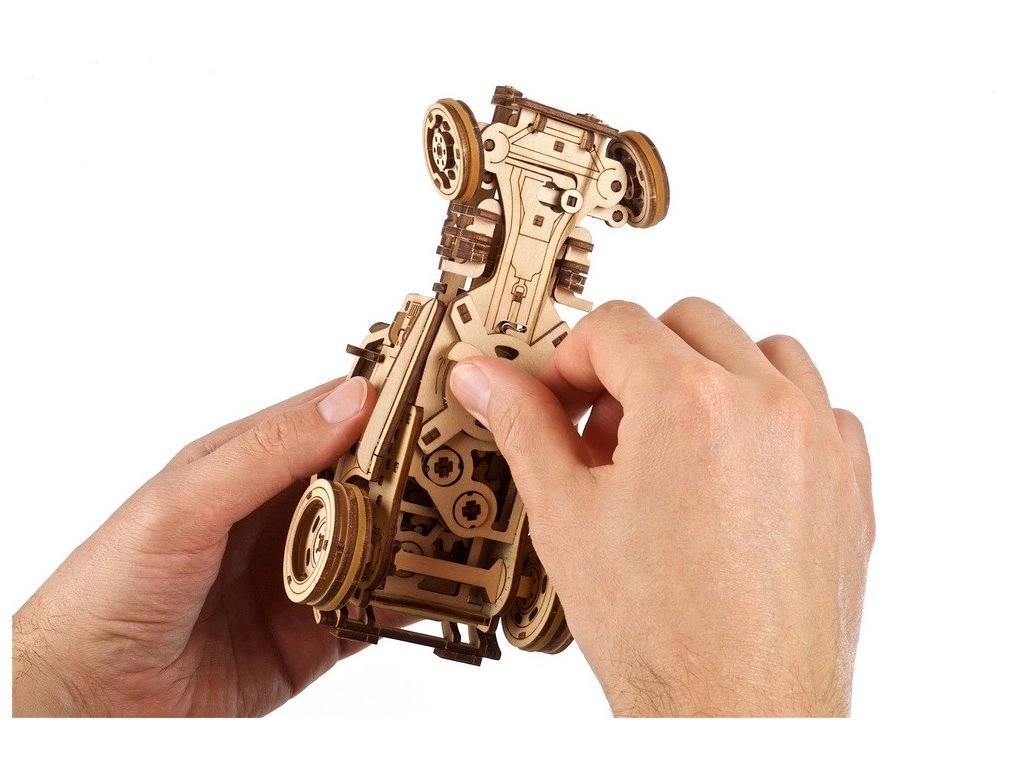 Počastite se autentičnim hot rodom iz radionice UGEARS. Model Furious Mouse oduševit će ljubitelje automobila i 3D slagalica: nudi dva načina pogona (opružni motor navijen ključem ili klasično poguravanje po ravnom), glatko upravljanje prednjim kotačima i bogate mehaničke detalje. Zahvaljujući preciznom laserskom izrezu dijelovi savršeno pristaju, pa za izradu ne trebate ljepilo ni poseban alat.