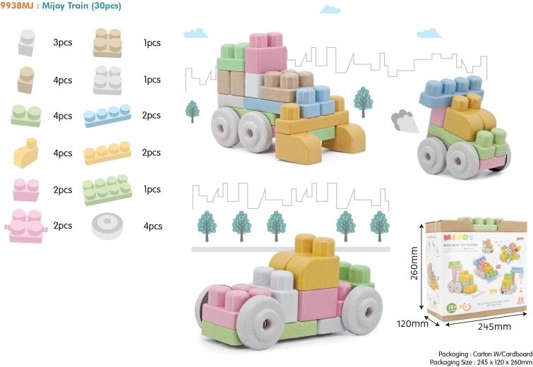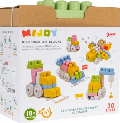 Set konstrukcijskih kocki za najmlađe iz ekološki prihvatljive serije dizajniran je kako bi se smanjila uporaba plastike. Kocke su izrađene od 25% biomaterijala od otpada rižinih ljuski. Imaju zaobljene rubove, razne oblike i pastelne boje. Set od 30 dijelova omogućuje slaganje raznih konstrukcija, što pozitivno utječe na djetetov razvoj, potiče prostorne i motoričke vještine te kreativnost.