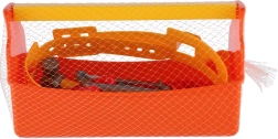 Praktični dječji set alata u narančastoj kutiji s ručkom i remenom za alat razveselit će sve male majstore. Sadrži 9 laganih plastičnih dijelova koji razvijaju finu motoriku, maštu i tehničko razmišljanje. Kutija omogućuje lako prenošenje i pregledno spremanje svih alata. Prikladno za djecu od 3 godine.