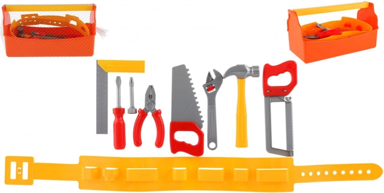 - Plastična kutija, remen za alat, odabir dječjih alata (npr. čekić, ključ, kliješta, odvijač, pilica)