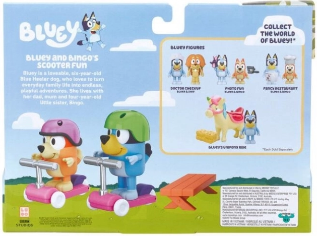 Doživite zabavu sa setom za igru Bluey - Vožnja na romobilu, koji oživljava likove Bluey i Bingo iz popularne animirane serije. Ovaj set djeci omogućuje ponovno proživljavanje omiljenih scena i istodobno potiče njihovu kreativnost. Sadrži dvije pokretne figurice, dva romobila i dvije sigurnosne kacige.