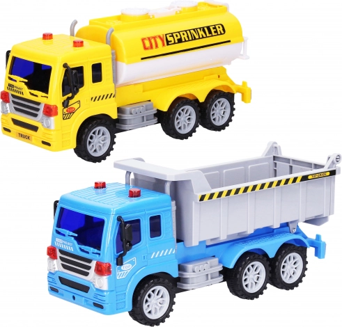 Zabavan set za male vozače sadrži kiper, cisternu i prometne znakove duljine 25 cm. Autići voze na inerciju, pa se lako upravljaju i pružaju puno akcijske zabave uz učenje pravila cestovnog prometa.
