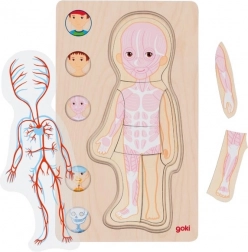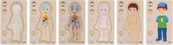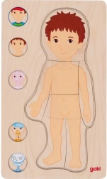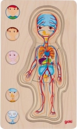 Drvene puzzle Ljudsko tijelo – dječak idealno su pomagalo za znatiželjnu djecu koja žele zaviriti ispod površine. Pet slojeva postupno prikazuje kožu, mišiće, unutarnje organe, krvotok i kostur. Svako uklanjanje sloja otkriva novi dio tijela i potiče prirodnu želju za spoznajom.
