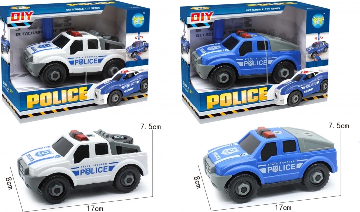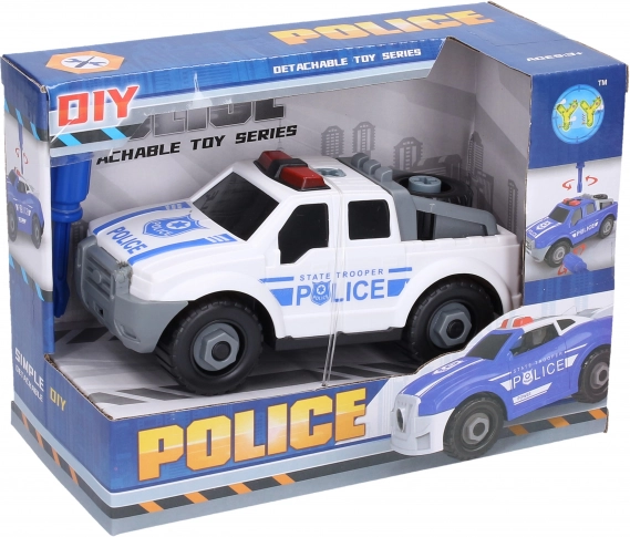 Dio pakiranja je križni odvijač s integriranim ključem za matice u ručki, tako da djeca imaju sve potrebno za montažu i demontažu. Na izbor su dvije varijante boja – bijela i plava, idealne za svaku kolekciju policijskih vozila.