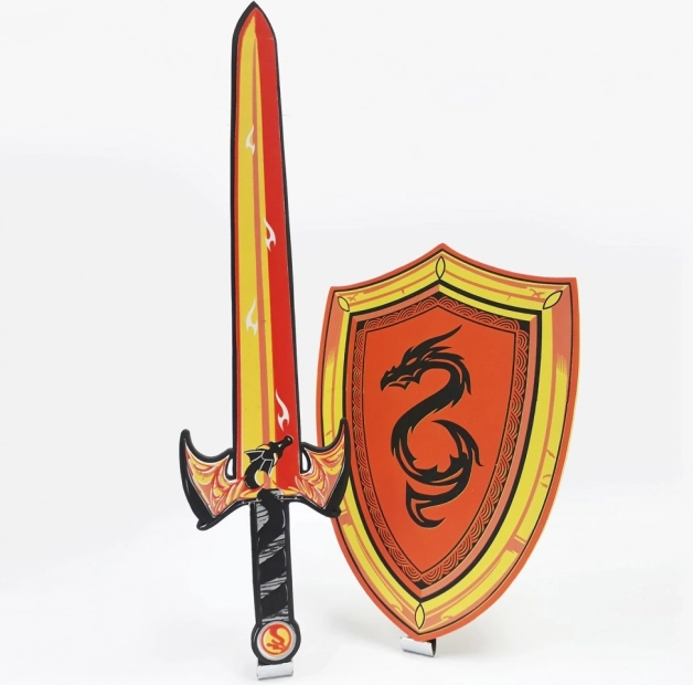 Ovaj dječji set sadrži pjenasti mač i štit s atraktivnim motivom zmaja. Lagana pjenasta konstrukcija omogućuje sigurnu igru bez rizika od ozljeda te je pogodna za djecu koja vole viteške pustolovine, samurajske igre i kostimiranu zabavu.