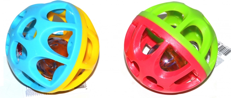 Kvalitetna i sigurna lopta s zvečke za djecu, u dvije varijante boja; podržava razvoj osjetila i motorike.