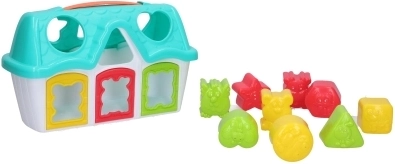Djeca mogu otkrivati i učiti pomoću 10 različitih kockica koje treba pravilno smjestiti u odgovarajuće otvore kućice. Ova zabavna i edukativna igra pomaže djeci prepoznavati oblike i boje.