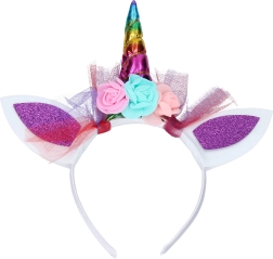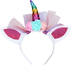 Slatka traka za kosu s raznobojnim rogom jednoroga za sve male modne kraljice. Sjajan dodatak za dječje zabave, maškare i fotografije. Zahvaljujući laganoj konstrukciji i udobnom pričvršćivanju, ugodno se nosi cijeli dan. Vesele boje, magični rog jednoroga i udobno nošenje razveselit će svaku malu princezu.