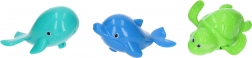Ove plivajuće životinjice donose djeci radost u vodi – dovoljno je okrenuti navijajući kotačić na donjoj strani i gledati kako se patkica, kornjačica ili dupinić kreću po površini. Zahvaljujući kompaktnoj veličini od 10 cm lako ih mogu držati i manji dječji dlanovi.